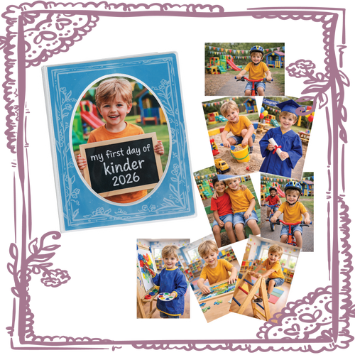 Our Kinder Albums are the perfect way to save those “they grow up so fast!” moments. The front cover features a sweet oval cut-out, giving you a peek at the first photo inside and instantly personalising your album.